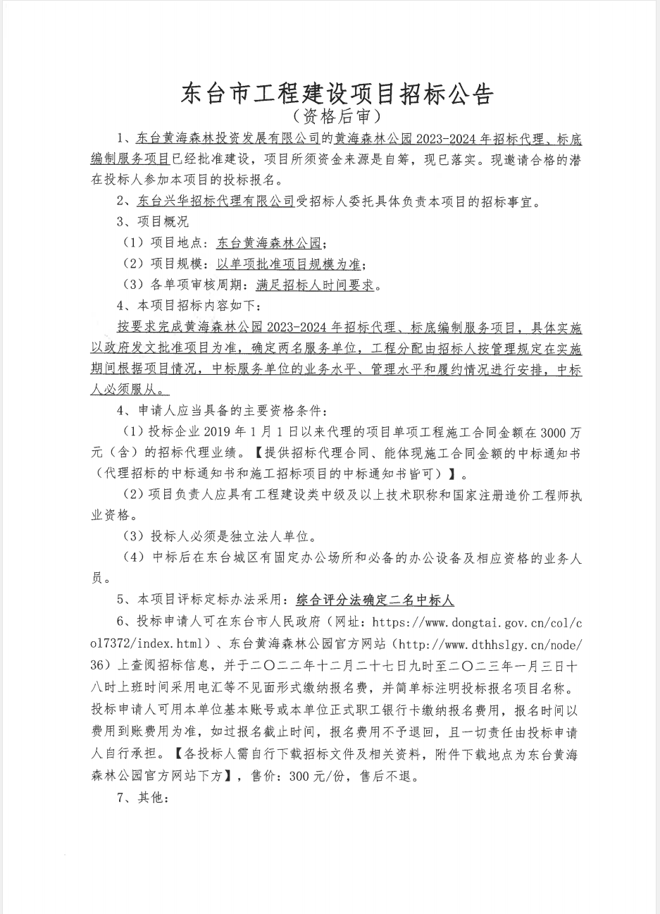招标文件——黄海森林公园2023-2024年招标代理、标底编制服务项目(1).doc
