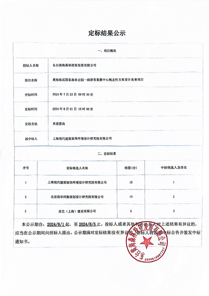 定标结果公示(8月1日)