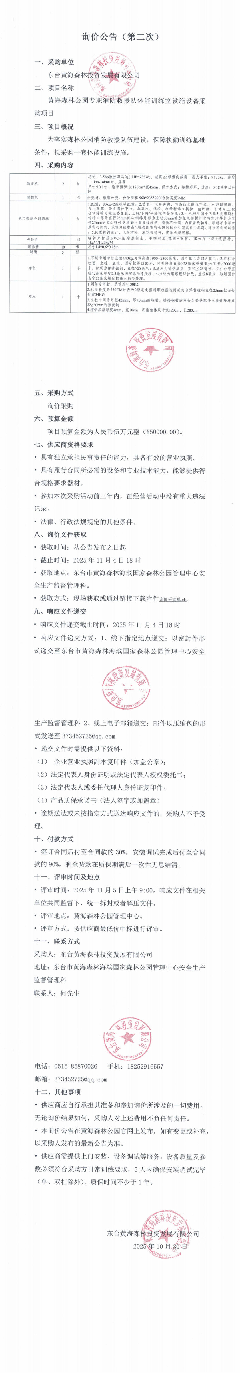 黄海森林公园专职消防救援队体能训练室设施设备采购项目